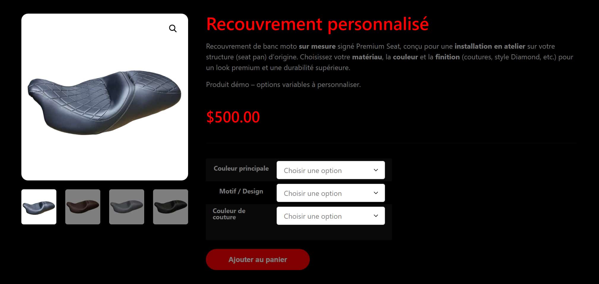 « Super service! J’avais acheté une selle confort Ducati pour ma Monster 2013, le confort n’y était pas du tout. Premium Seat ont refait ma selle d’origine conducteur et passager avec leur gel et un revêtement sur mesure! WoW qu’elle différence. Je le recommande fortement à tout le monde. »