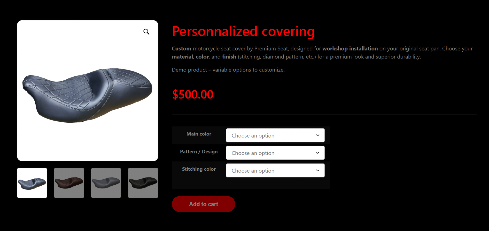 "Great service! I had purchased a Ducati comfort saddle for my 2013 Monster, the comfort was not there at all. Premium Seat redid my original driver and passenger saddle with their gel and a custom cover! Wow, what a difference. I highly recommend it to everyone."
